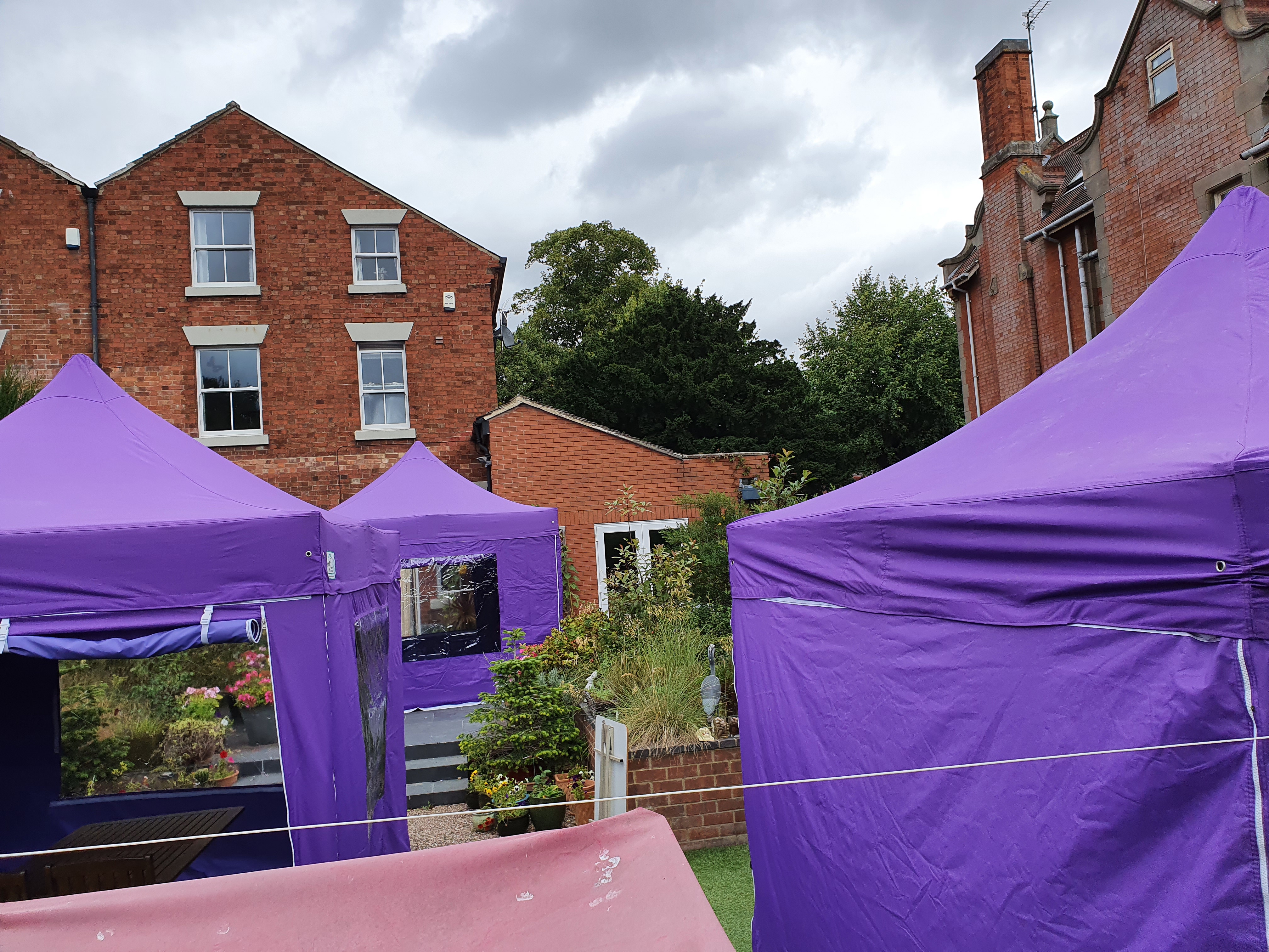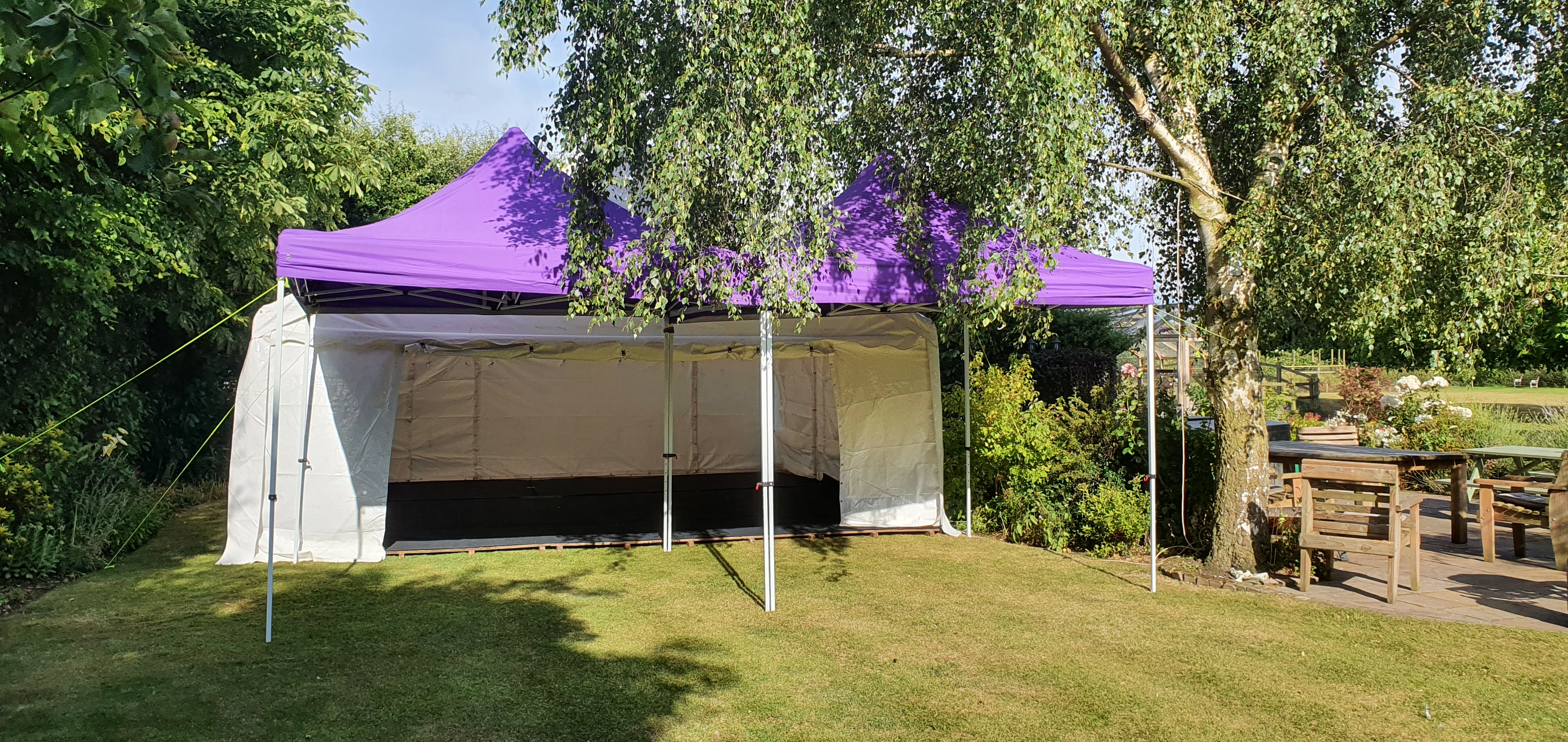 Gazebos for hire in Mansfield and the surrounding area such as Mansfield Woodhouse, Ravenshead Blidworth etc for your back garden rain or sunshine these gazebos in 3m x 3m or 3m x 6m are simple and quick to erect by our team. available in black, white or purple.