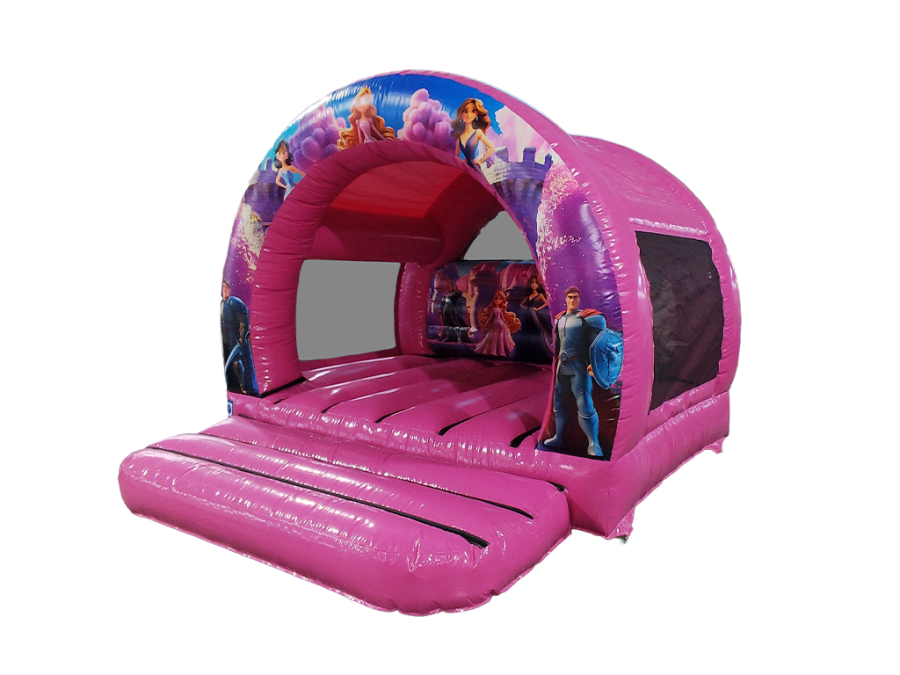 One of our new designs for 2025 this curved roofed 12ft bouncy castle in Princess theme is now avaialble for hire.
