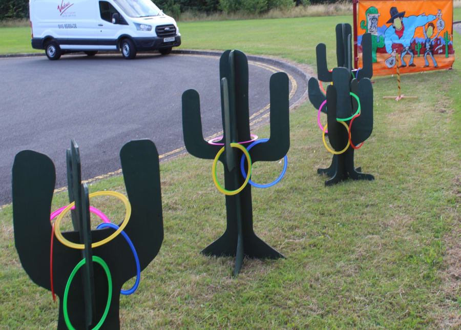 We have a set of 5 of these. when you hire this hoopla you get all 5 with hoops included in the price.