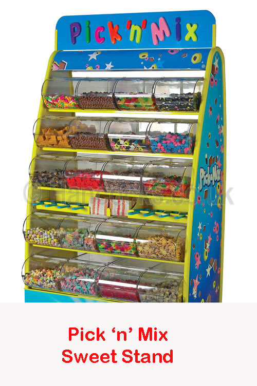 The price you pay is per 1kg required. This stand has 20 bins, each holding 1kg so a wopeing 20 kg!! You can have 20 sweets some can be wrapped individually. You can of course have 2 or more bins with the same sweet. the choice is yours.