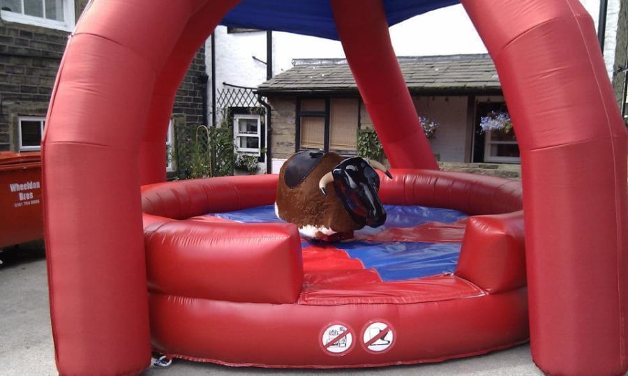 Our rodeo bull shelter can be used for all sorts of events either covering our bull or as a cover for bands, Djs or sidestalls. This inflatable shelter needs to be anchored idealy on grass and comes complete with a blower to inflate.