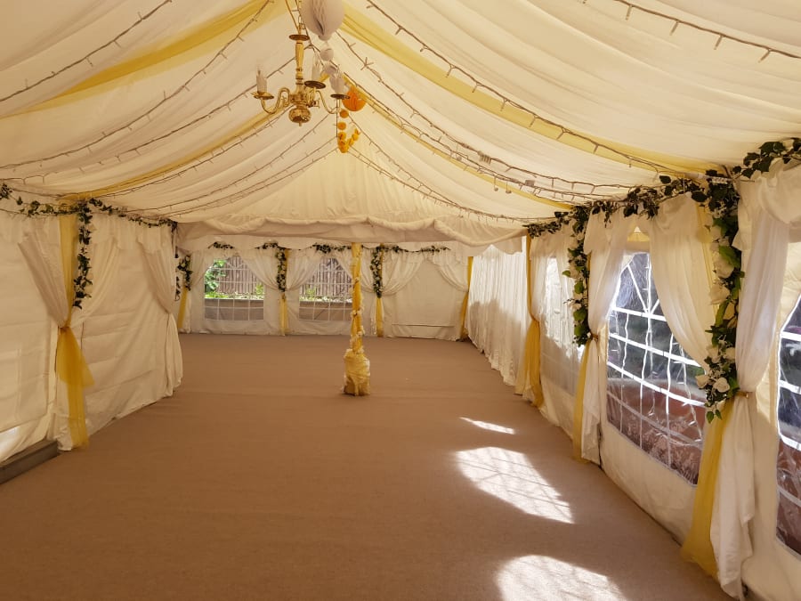 Consists of plywood in 18mm screwed to 50mm batons these boards interlock like house bricks covered in carpet gives a solid base so ladies can wear high heels and looks great transforms the look of the party.
