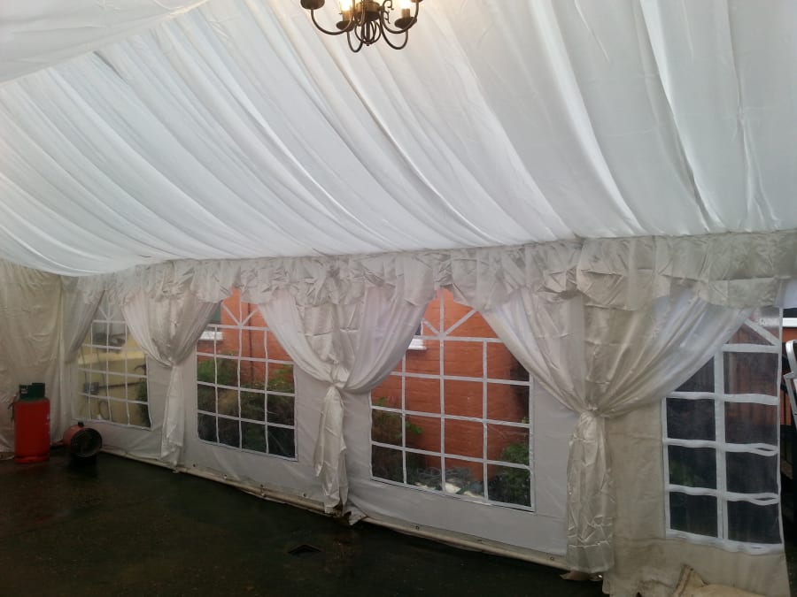 A lovely sized tent for larger gardens @ 6 metres wide we need an extra metre around the edge for the crew too be able to erect and anchor the tent properly.